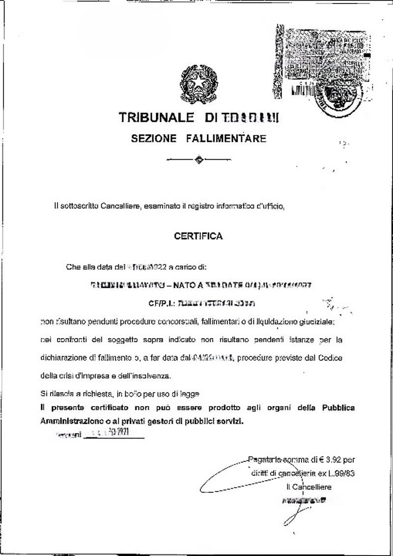 Certificato Fallimentare è un documento che